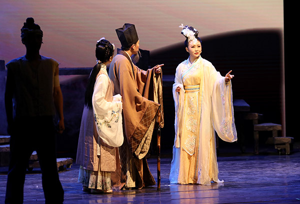 《帆影弦歌萬千重》中,蘇媛與河上飛久別重逢話衷腸。董芳忠/攝