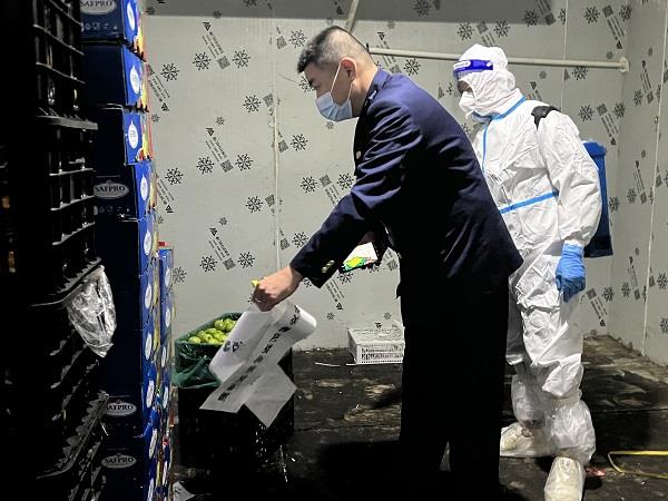 執法人員對涉核酸檢測陽性的進口水果進行封存處置。資料圖片