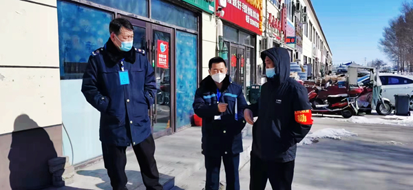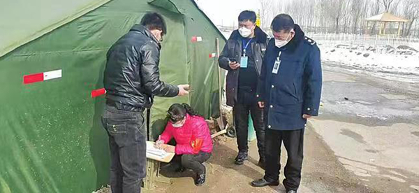 李長(zhǎng)民同志(右一)在疫情防控工作的第一線(xiàn)。資料圖片